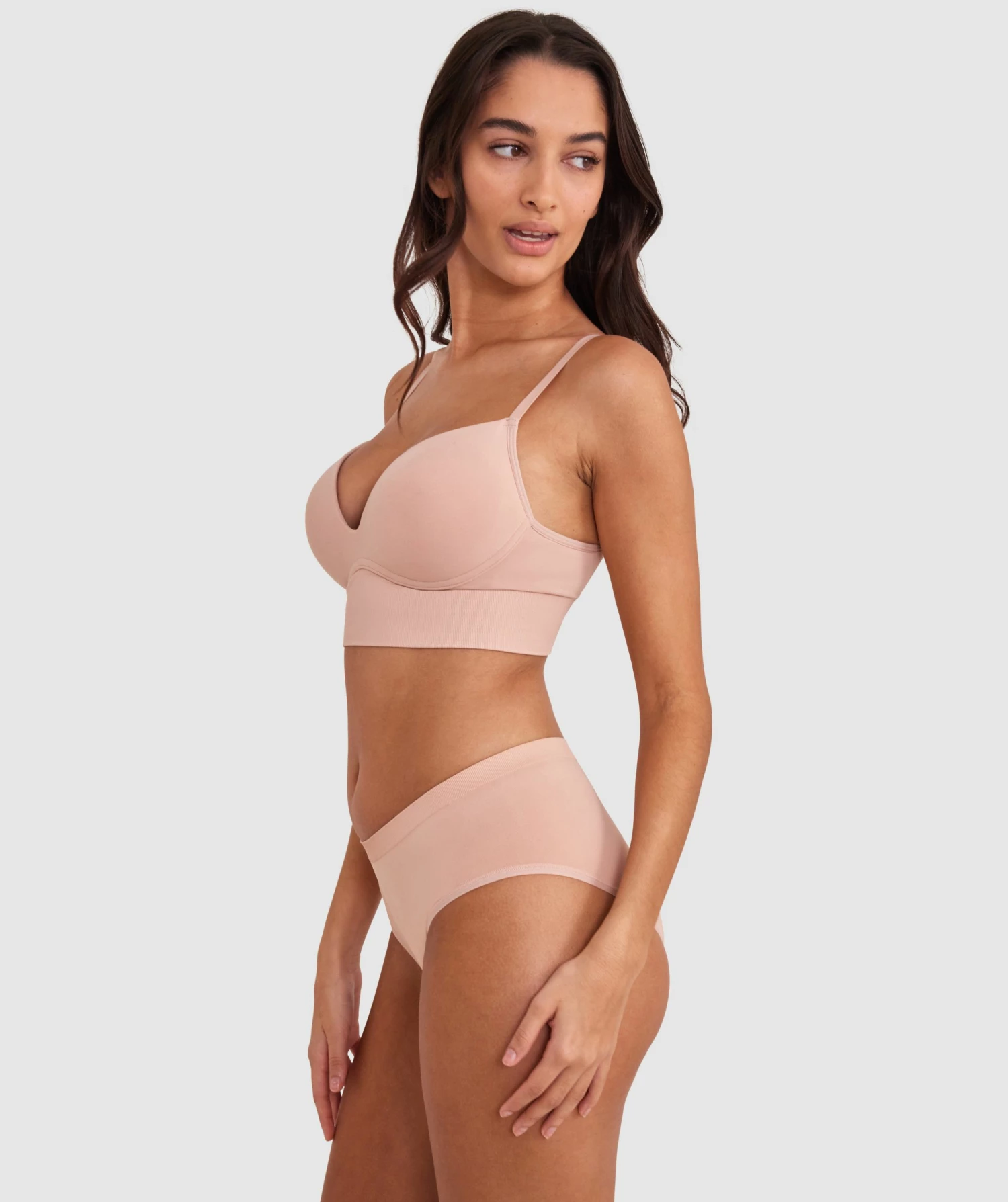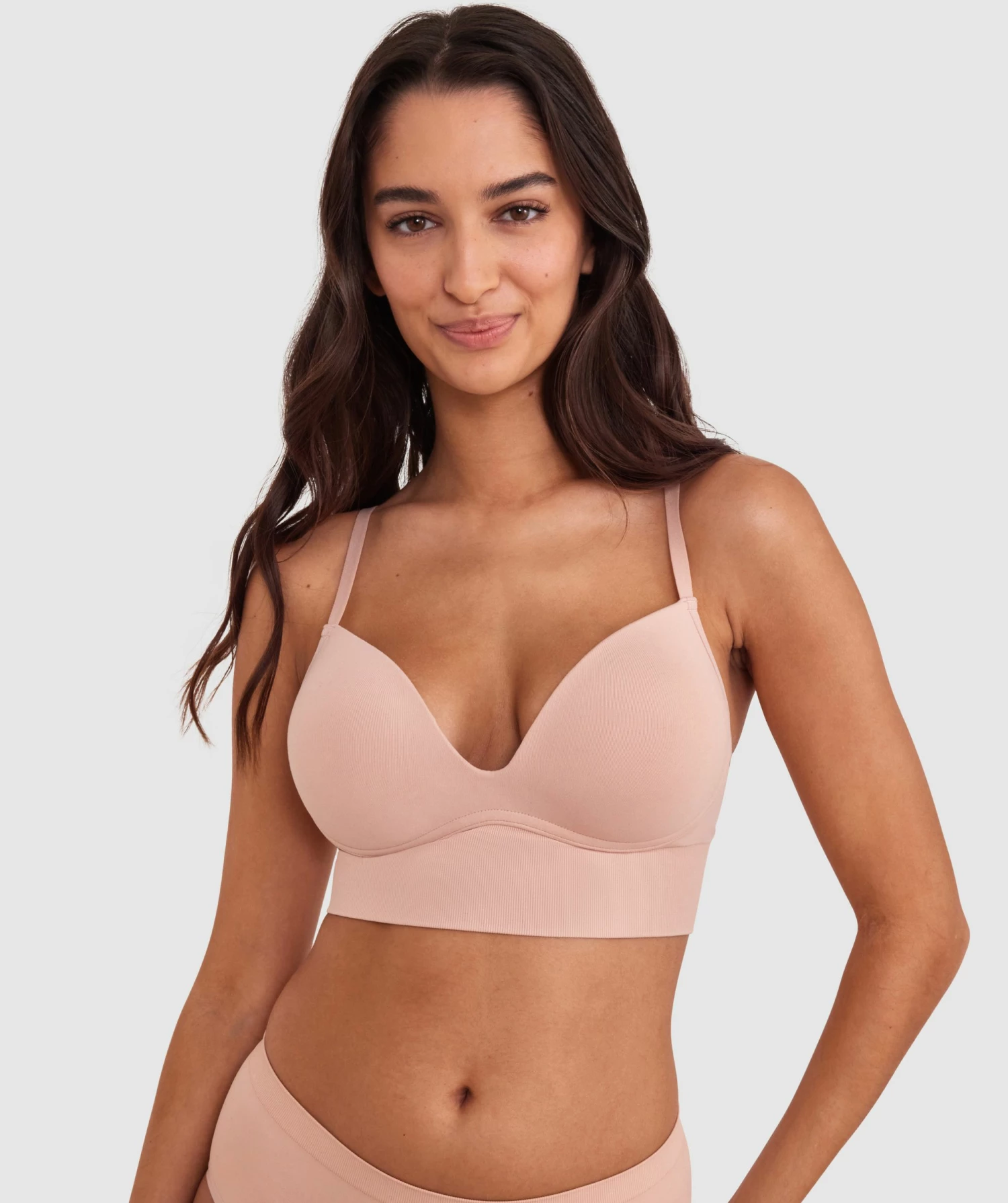 Meet a true wardrobe staple that embraces versatility–our Base Layers Long Line Push Up Plunge Wirefree in a classic tan! Whether you’re dressing up for a special occasion or going for a casual look, it effortlessly complements any outfit.