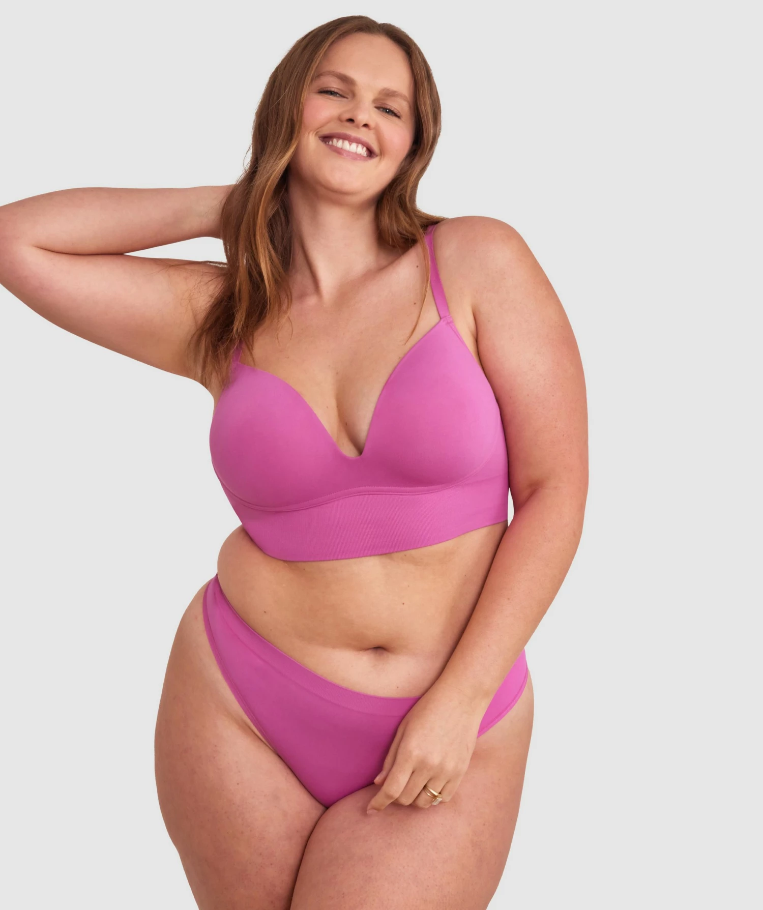 Conquer the day with a playful lift and a wink of confidence. Our Base Layers Long Line Push Up Plunge Wirefree lives up to its name by being the perfect base layer for all your outfits. Made with pink elastic fabric that’ll make you feel fabulous!