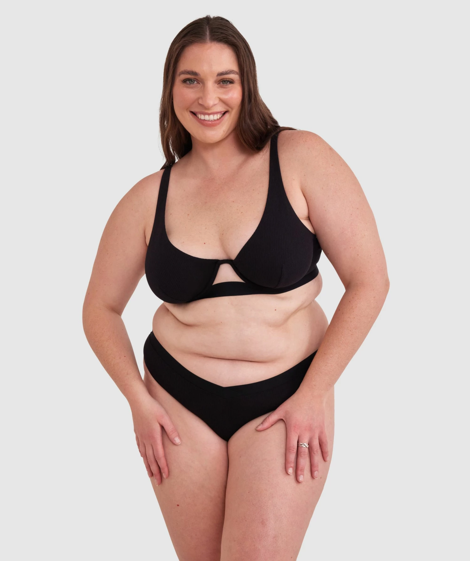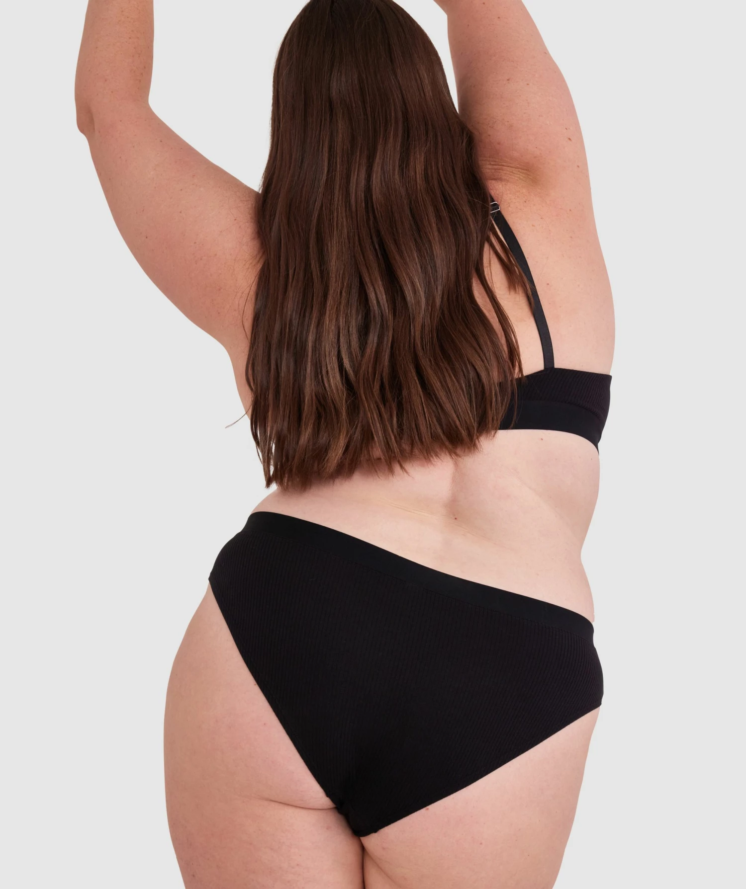 Complete your lingerie ensemble with our undeniably charming Chill High Waist Brazilian in black. This pretty panty offers a seamless, flattering fit. Embrace its cheeky design and let your confidence soar as you enjoy all-day breathable comfort.