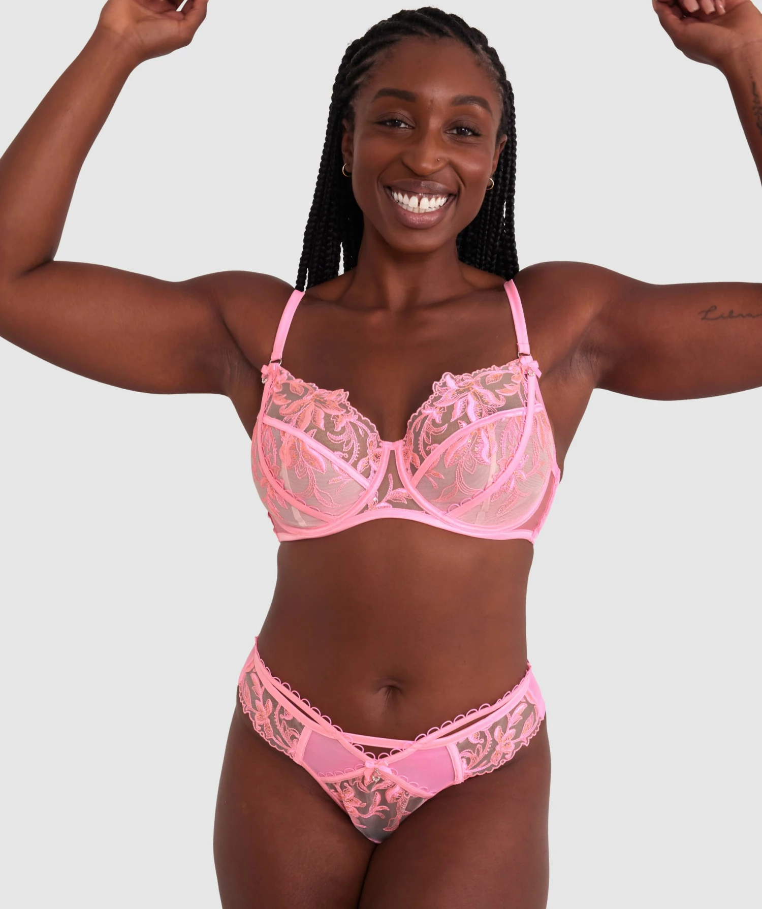 Let your fantasies take flight and indulge in the ultimate blend of fun and flirty with our Dreaming of You Brazilian. This pink number makes your lingerie dreams a reality, leaving you feeling confident, captivating, and absolutely unforgettable.