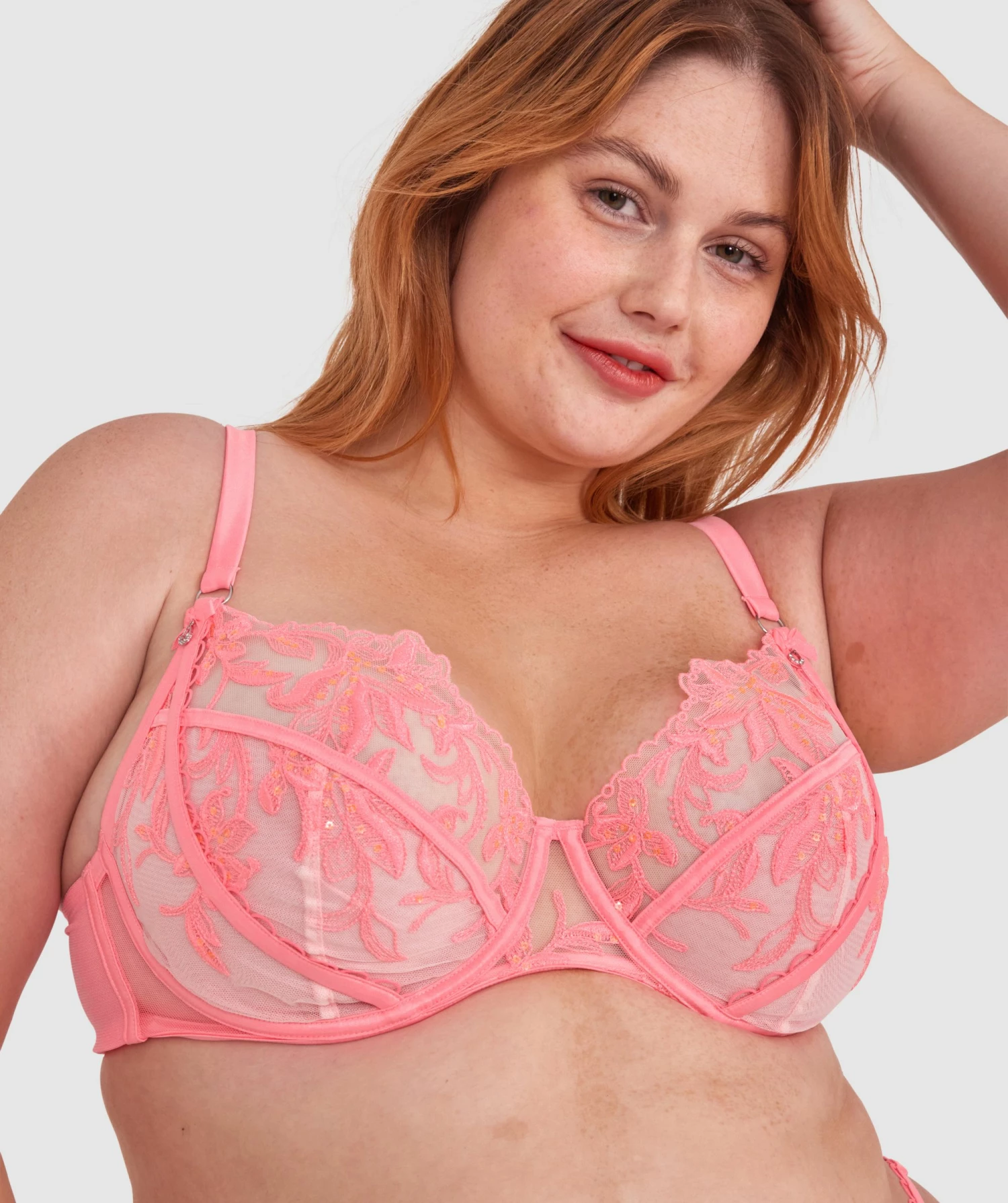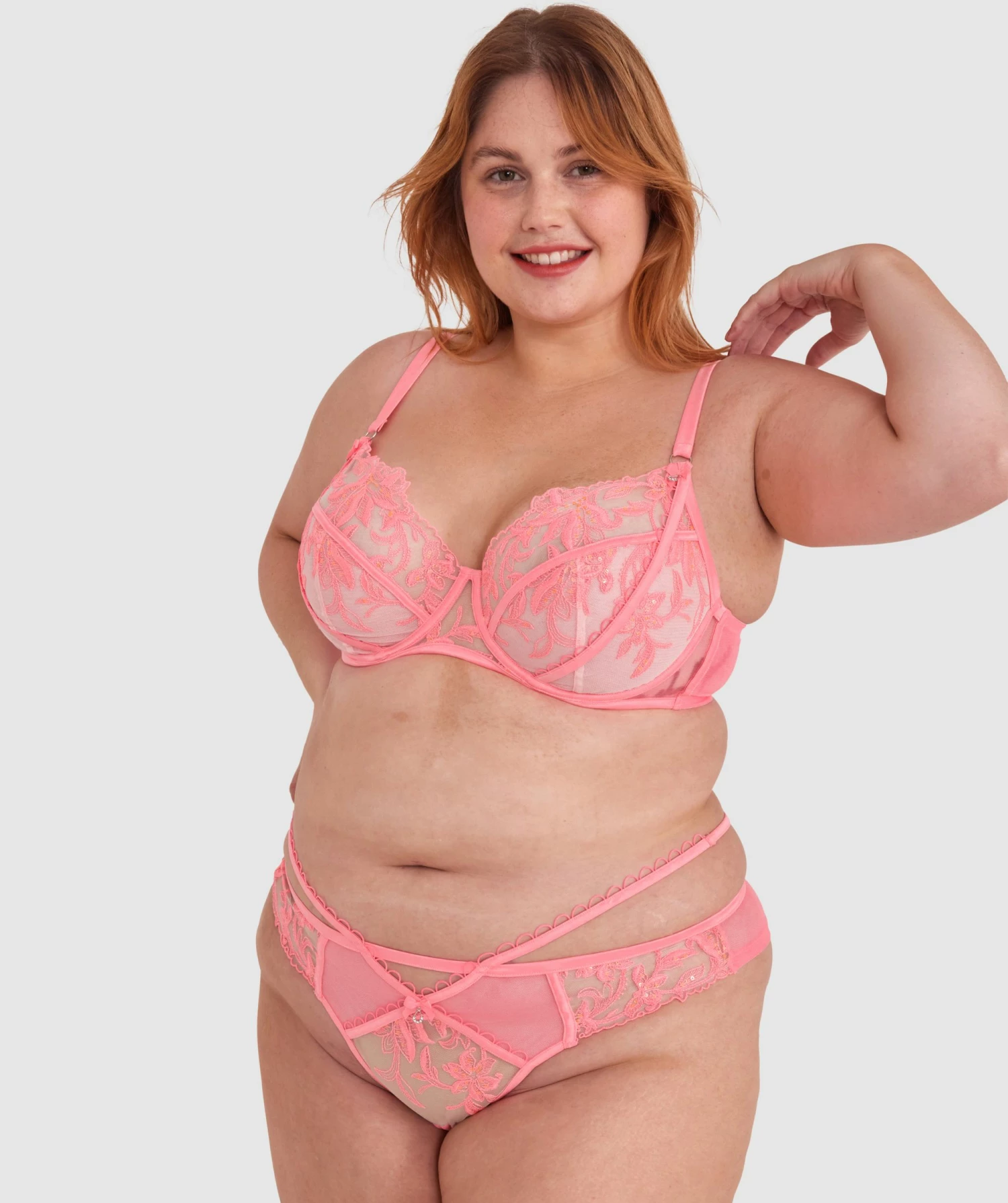 Embrace the allure of delicate details that ignite the imagination and add a touch of irresistible charm. Introducing our Dreaming of You Full Cup Balconette Mossy- a whimsical and flirtatious delight designed with sheer mesh and playful appliques.
