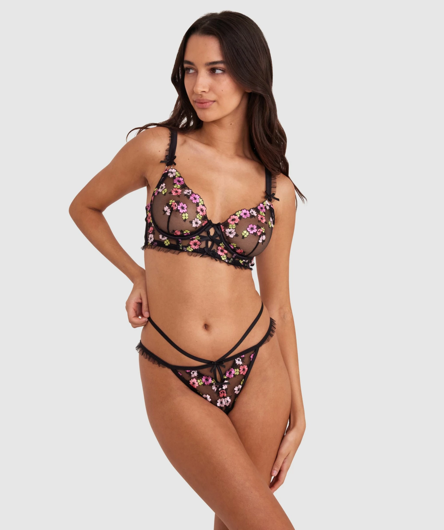 Make a bold statement with our Wilde Flower Mini V and leave your partner begging for me. This black panty gives pops of colour with gorgeous floral appliques. It’s supportive yet stylish, making it the perfect piece for daily wear or bedroom fun.
