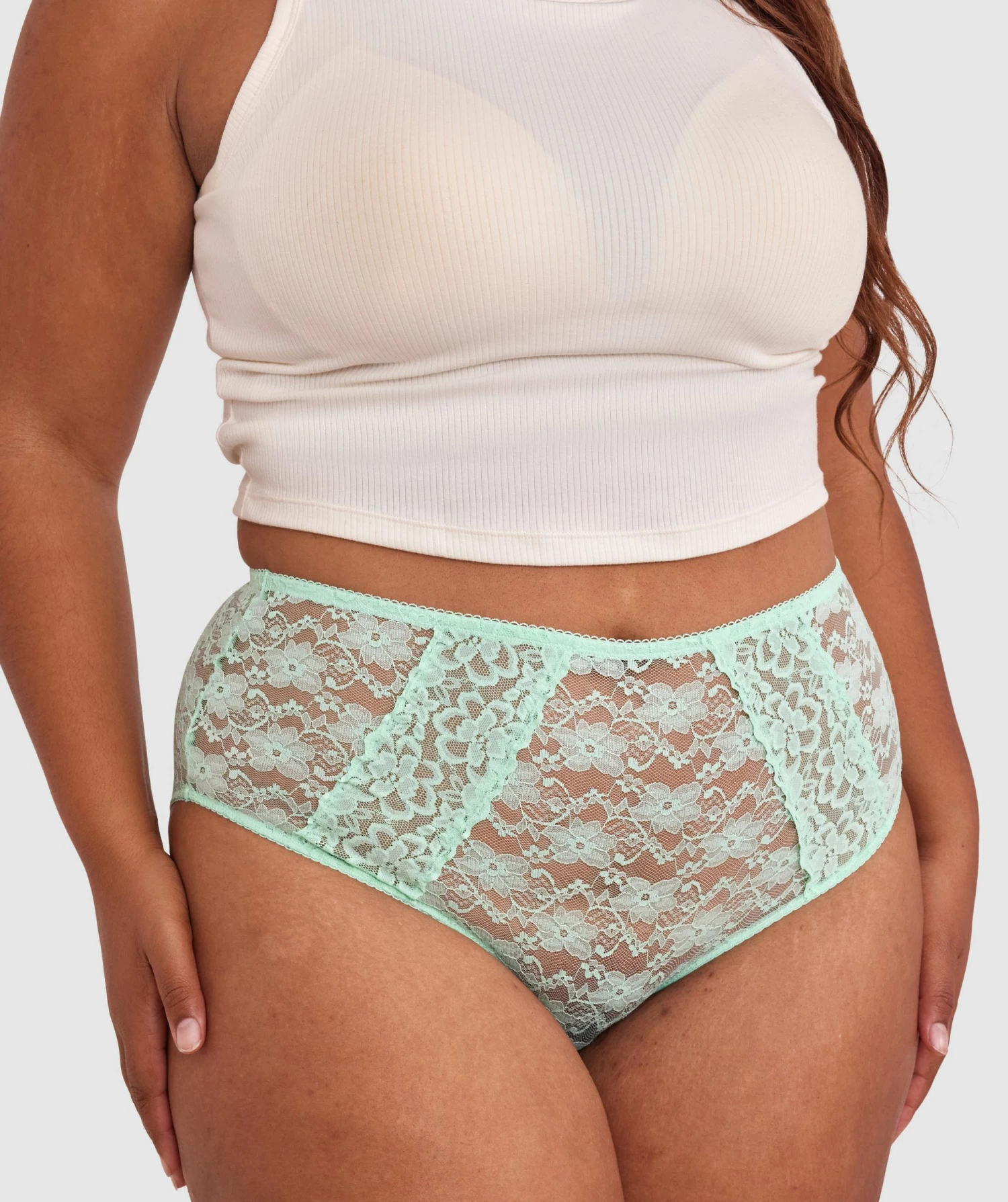 Revolutionise your lingerie drawer with our Eva Full Brief Panty in stunning mint green! Who said full coverage had to be boring? Embrace elegance and comfort in one exquisite piece. Discover a whole new level of style and confidence!