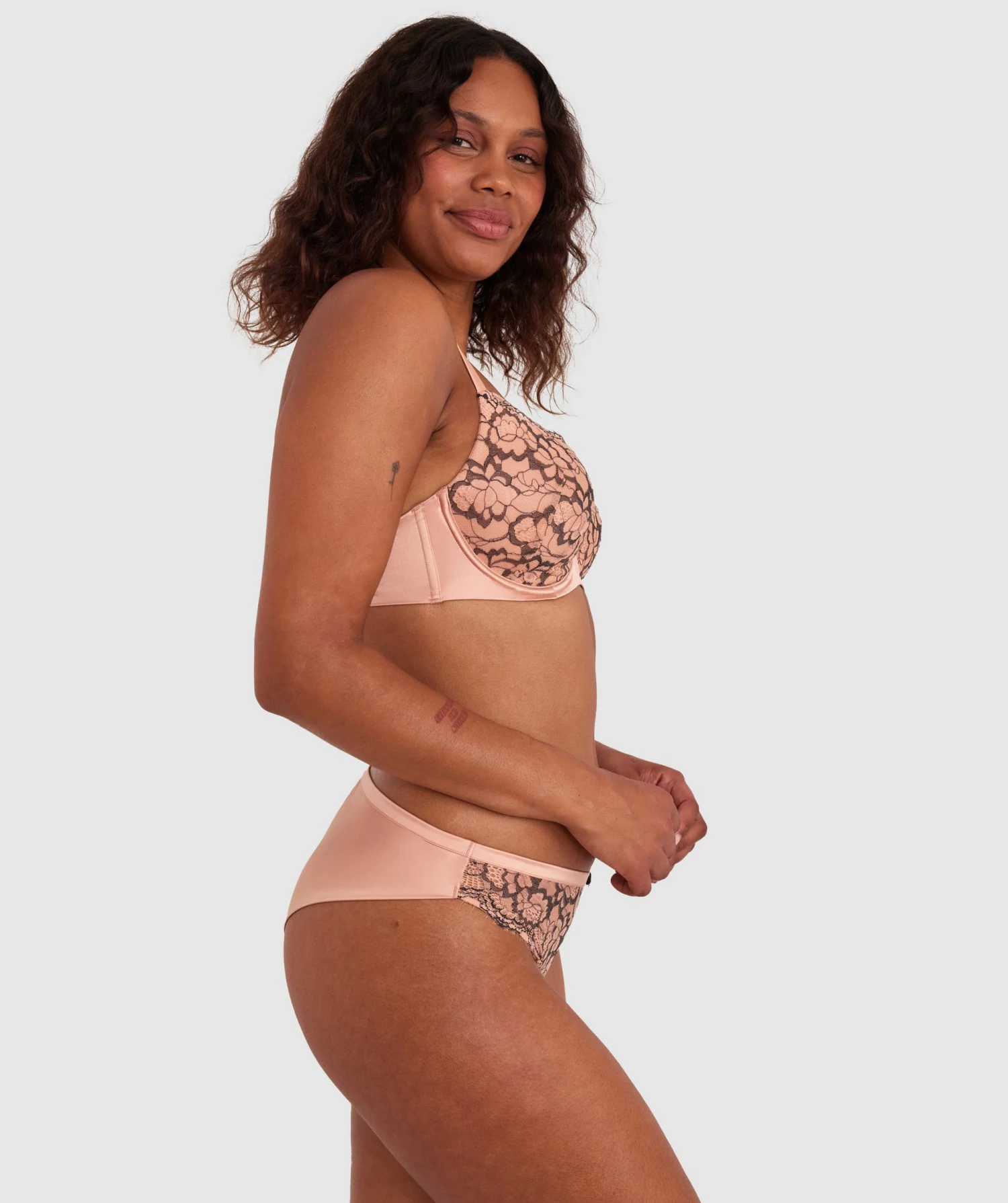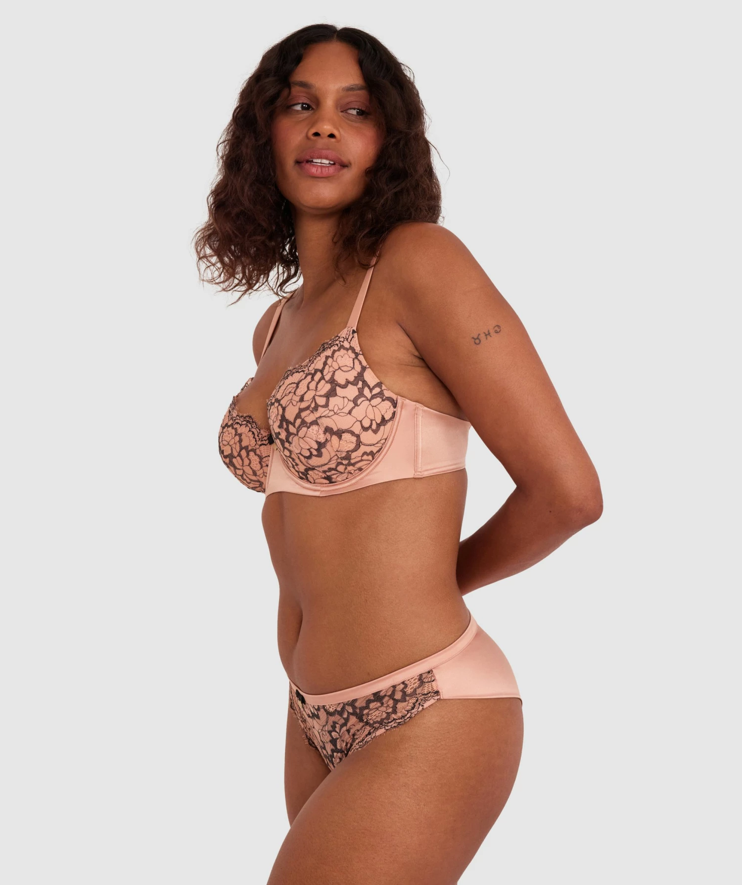 Like a well-paired latte and biscotti, the contrasting details of our Madrid Full Cup blend harmoniously. It’s a fusion of elegance in nude and dark brown that’s as captivating as a perfect coffee blend. A dainty bow is the perfect finishing touch!