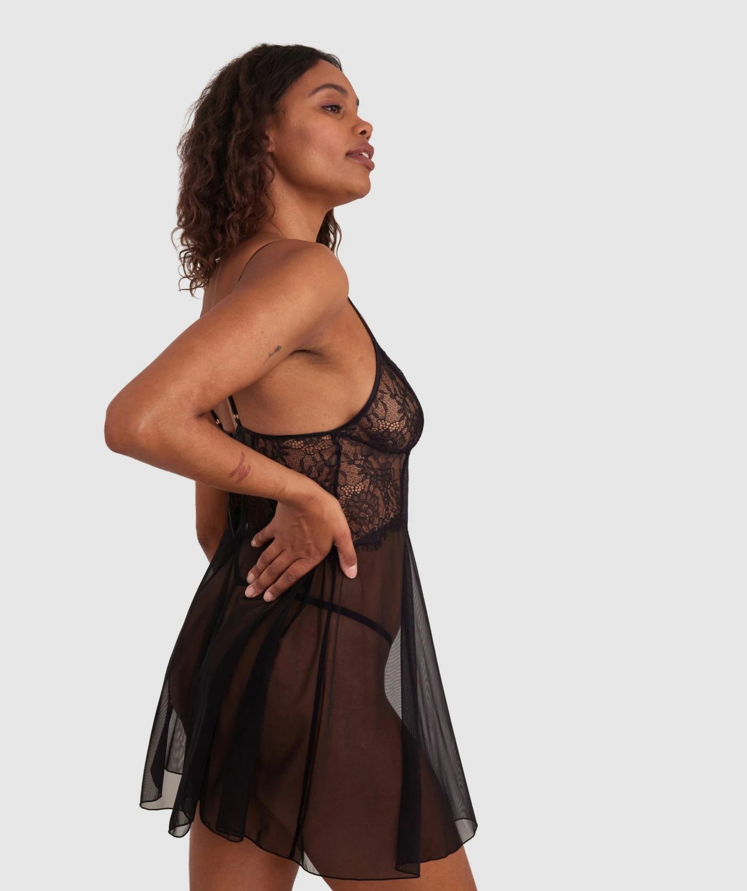 Dare to embrace your true desires and set the stage for seduction with our sultry Night Games Mystic Slip. Made with elegant black mesh and lace, this tickles the imagination. Let your body speak volumes and leave them breathless at every turn.