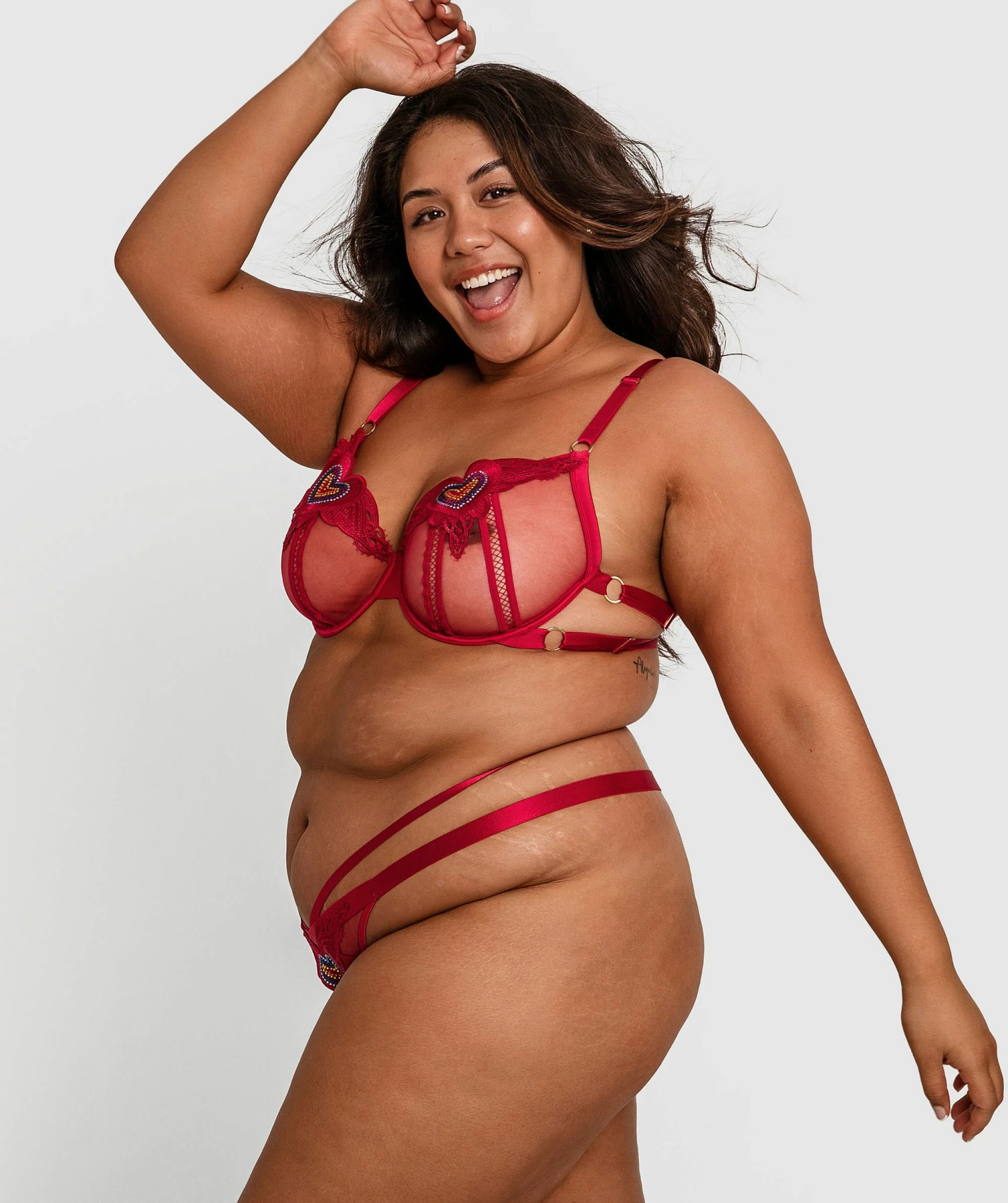 The heart decal right in the centre panel of our Valentine’s Mini V exudes love. And who doesn’t need a little TLC in their life? Or maybe, a lot. When you wear this sexy piece, you’ll truly get some lovin’ and attention. Pair with our matching bra.
