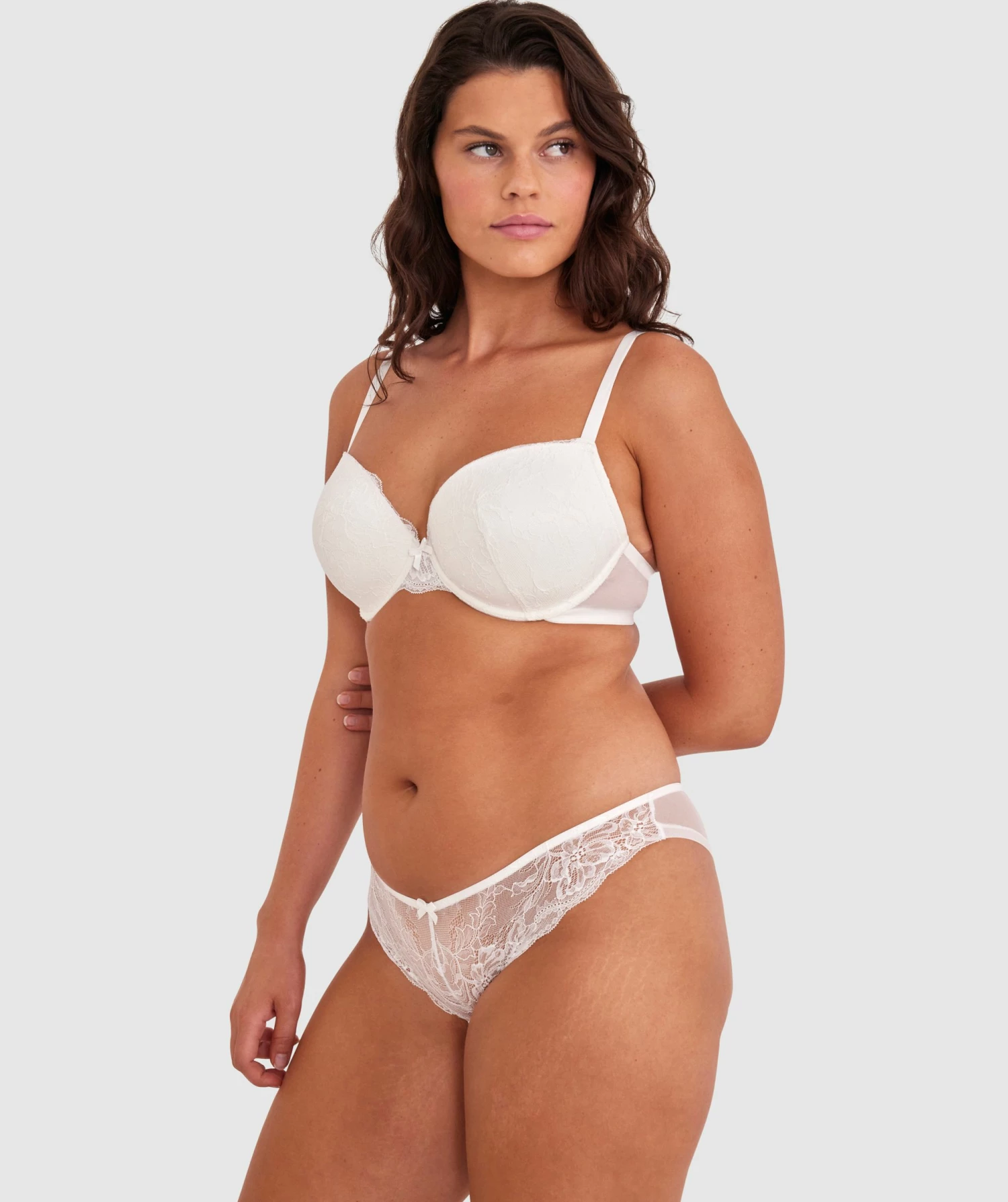Indulge in elegance with our Sally Brazilian in pristine ivory. Crafted from delicate lace and mesh, it’s a harmonious blend of sensuality and comfort. Elevate your top drawer with this exquisite piece that seamlessly fuses sophistication and allure.