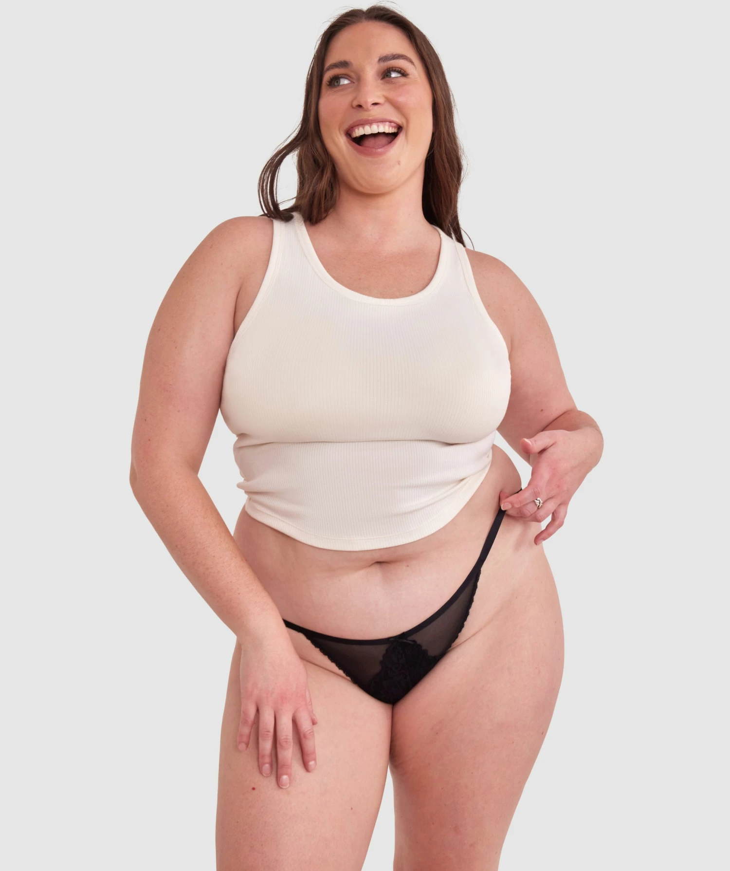 Ignite passion in the most delightful way possible with our stunning Suzie Tanga in glorious black lace. Whether you’re lounging around the house or indulging in bedroom fun, it’s the ultimate companion. Embrace those curves, babe!