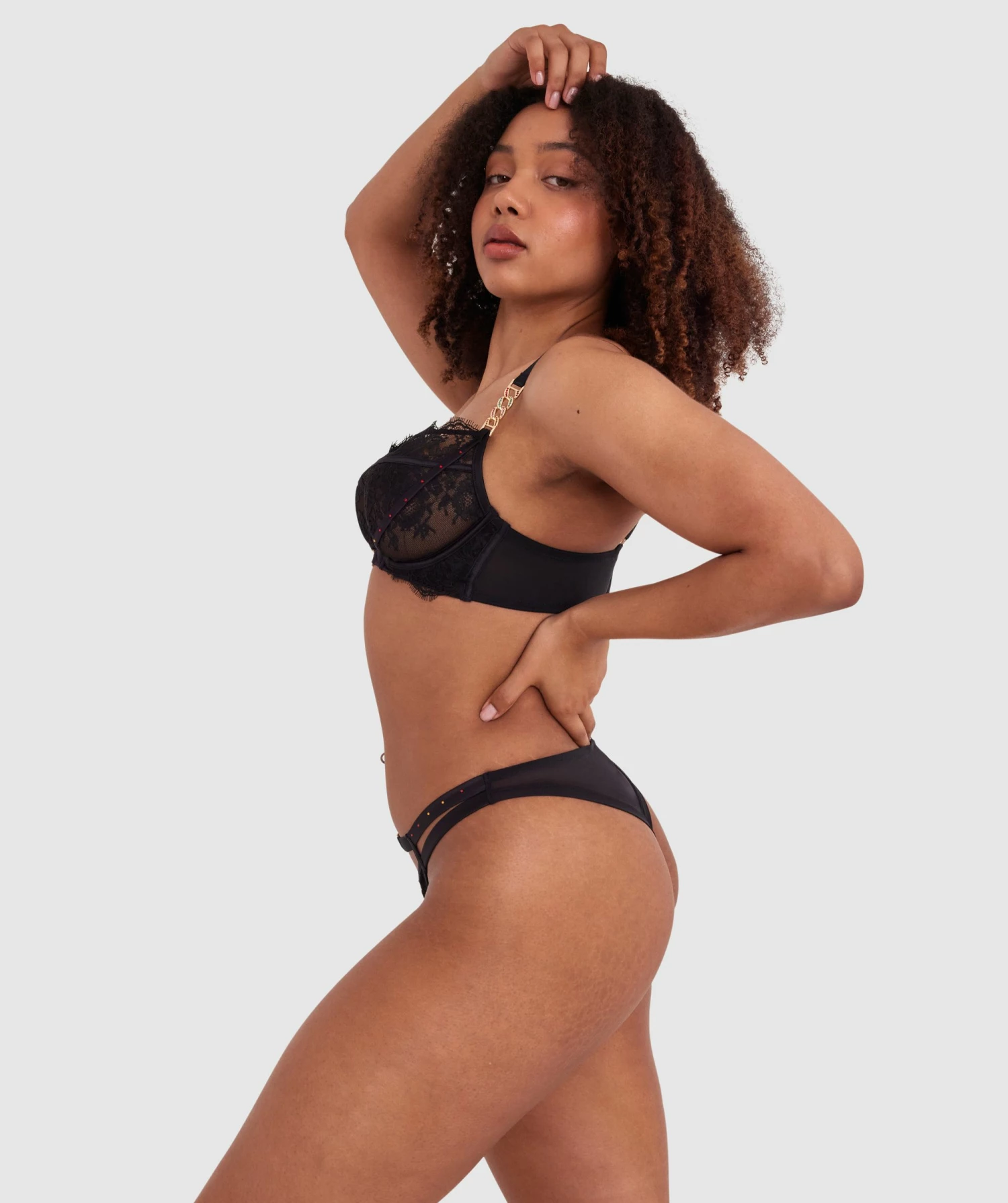Transform into a glowing goddess and ignite your inner fire with our alluring Glow Soft Cup and Mini V Set in elegant black. This fiery duo is the epitome of sophisticated sensuality, designed to make you feel like the sensuous vixen you truly are.