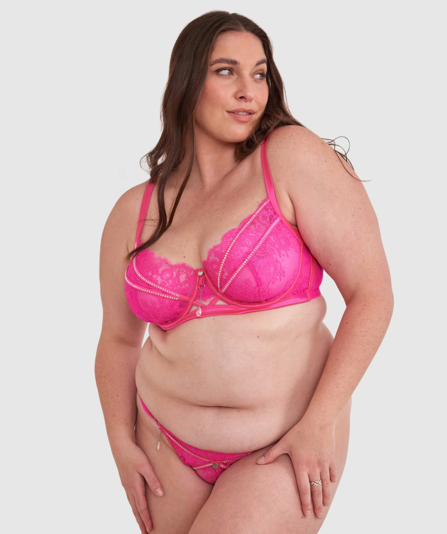 Elevate your lingerie game to new heights with our vibrant Showthang Full Cup Balconette Bra in fuchsia pink. A perfect blend of sensuality and sophistication, whether you’re indulging in a night of romance or exploring your inner temptress!
